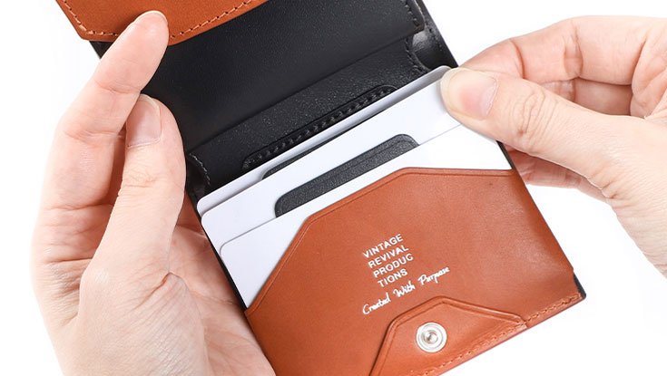フリースピリッツアミュプラザ博多店では人気のヴィンテージリバイバルプロダクションズのコンパクトでスリムな革財布を取り揃えております。本革を使用した高級感あふれる外観はもちろん、考え込まれた設計の使いやすさに虜になるブランドです。クラウドファンディングサイトで人気を博した二つ折り財布と長財布をフリースピリッツにて展開しております。3000%を超える支持を集めた長財布は、横幅が16.5mmとほぼ1万円札と同サイズでありながら、カード8枚・硬貨20枚・紙幣20枚を収納できる容量を確保。今までにあるようでなかったミニマム設計の長財布の他にも、片手で持てる小さな二つ折り財布もブランド人気の高いアイテムです。